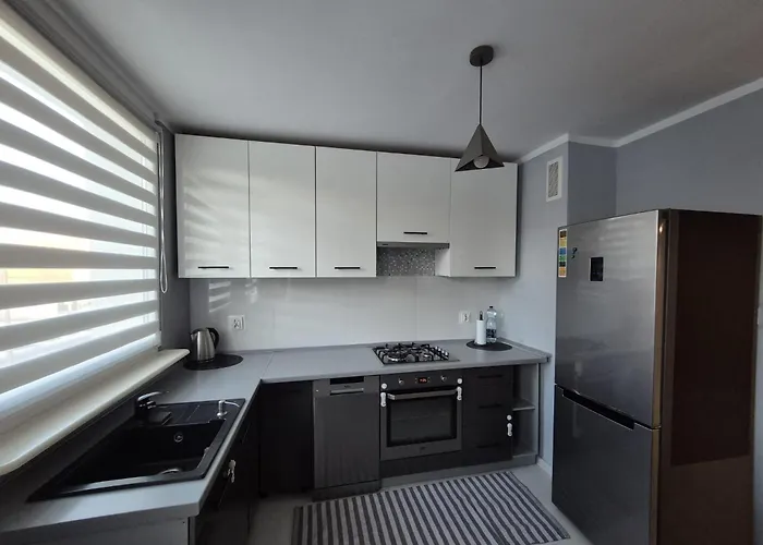 El apartamento cuenta con una cocina completa, perfecta para los huéspedes que deseen cocinar sus propias comidas. Los huéspedes también pueden tomar un autobús en la estación de autobuses Lesna / Szpakowa, situada a 250 metros, para explorar Lubiń.